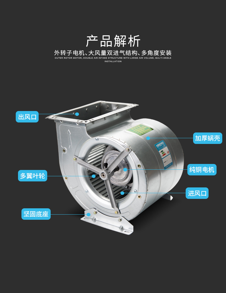 離心風機是依靠輸入的機械能,提高氣體壓力并排送氣體的機械,它是一種從動的流體機械。離心風機廣泛用于工廠、礦井、隧道、冷卻塔、車輛、船舶和建筑物的通風、排塵和冷卻;鍋爐和工業爐窯的通風和引風;空氣調節設備和家用電器設備中的冷卻和通風;谷物的烘干和選送;風洞風源和氣墊船的充氣和推進等。